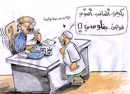 وهم بذلك نجحوا في إضعاف شخصية المعلم أمام طلابه حتى وصل به الأمر أنه لا يجرؤ أن يُوزع أوراق امتحانه في حصته خوفاً من مواجهة طلابه فيضطرّ إلى توزيعها في غير حصته!ومثله يفعل المدير فعندما يُريد المدير أن يوزع الشهادات على طلابه يختار آخر حصة من يوم الخميس ليذهب كل طالب بعدها إلى بيته ويأتي يوم الأحد وقد نسي ما كان قد حصل معه في المدرسة!وأُنهي كلامي لكم بالمرور على قانون الغش في الإمتحان الذي يقول:إذا ضُبط الطالب يغش من برشامة في امتحان ما فلا يجوز للمراقب أن يكلمه بل يتركه يغش منها وبعد أن ينتهي الطالب من امتحانه يقوم المراقب بكبس هذه البرشامة في دفتره وعند تصحيح هذا الدفتر تخصم العلامة التي نقلها الطالب من البرشامة فقط!.