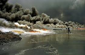 وبدأنا ننتظر الطريقة التي سنموت فيها وإذا بهم يُشعلون آبار البترول عمداً ويُغرقون شواطئ الكويت أيضاً بالبترول لتلويثها حتى لا يستخدمها الحلفاء في إنزال جنودهم فيها وتلبدت سماء الكويت بالدخان الأسود وحجبت عنا الشمس تماماً وأصبحنا نعيش في ظلام دامس حتى أن السيارات تشعل أنوارها نهاراً إذا اضطرت للسير في الشوارع وانتشرت رائحة الكبريت الخانقة وتلوث الجو والهواء وأصبحنا نتنفس الدخان في كل مكان في البيت وفي الحمام وفي الشارع وفي السيارة أما إذا التقى أحدنا بالآخر فكان كل واحد منا يزيل ما علق على الآخر من آثار الدخان والحرائق واستمر هذا الوضع بشكل أو بآخر حتى غادرنا الكويت في 6/8/1991.