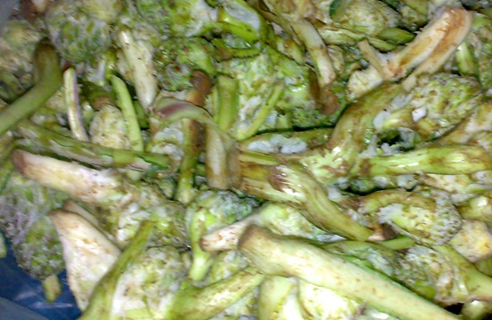 تجمع أوراقه الخضراء الطرية والغضة منها وتنظف جيداً بالماء والصابون وتغلى على النار ثم تملآ بالرز واللحمة ثم تلف كما تلف ورقة الملفوف وتطبخ على نار هادئة وتقدم عادة مع محشي الكوسا وورق العنب والزعمطوط والملفوف ومحشي أوراق القرنبيط إن وجدت ولا تخلو وليمة فلسطينية من أطباق المحاشي السابقة وهذه المحشيات هي التي تميز أكل امرأة عن أكل غيرها من النساء فكلما كان لف هذه الأوراق مرتباً وصغيراً في الحجم قيل عنها أنها امرأة معدّلة أي أنها تجيد صناعة الأكل وتتقنه.